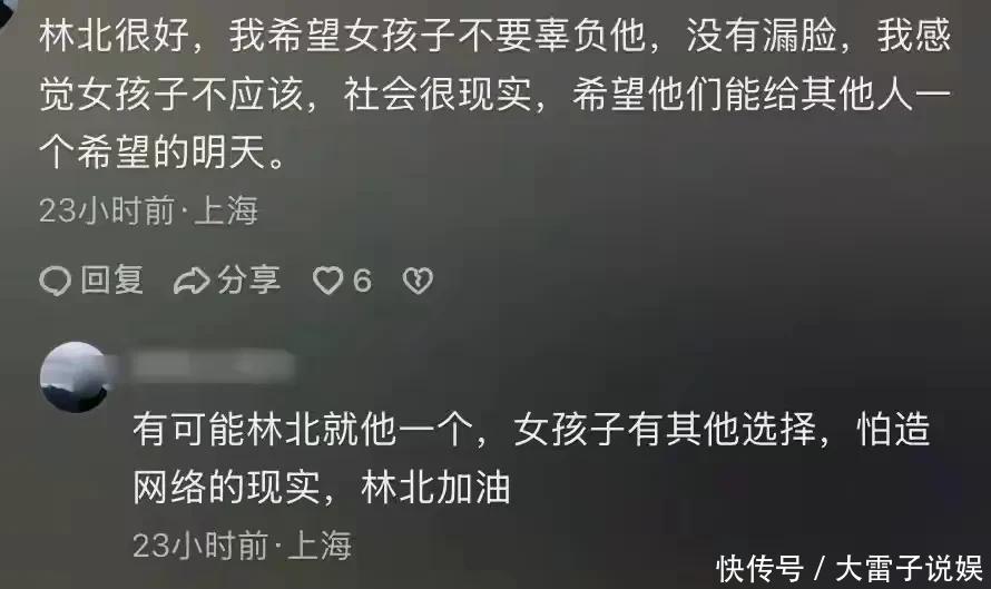 林北试了十次才抓到,她举着小熊蹦蹦跳跳,口罩上方的眼睛弯成月牙:“这是你给我抓的第三个小熊了。”晚上回到出租屋,他们坐在阳台的藤椅上,小棠靠在他肩上,说:“你山上的视频我都看了,吃野菜的样子好傻。”他说:“那是为了给你赚彩礼钱,等我拿了冠军,我们就结婚。”从好奇到恶意,只隔了一个口罩的距离第二天,一切都变了。原本微博评论里全是“好甜”“羡慕”的话,突然出现了一条质疑:“为什么一直戴口罩?是不是长得不好看?”这条评论像颗石子,砸进了平静的湖面。很快,越来越多的人跟着问:“戴口罩是不是有什么秘密?”“林北是不是怕女友露脸丢面子?”